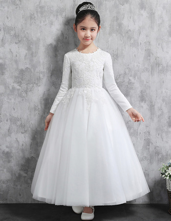 Affordable Lovely Ankle Length Satin Little Girls Party Dress with Long Sleeves
