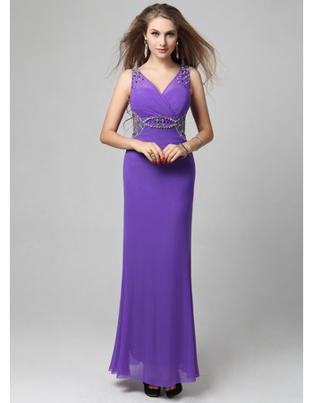 Beautiful Chiffon V-Neck Column/ Sheath Ankle Length Prom/ Evening Dress