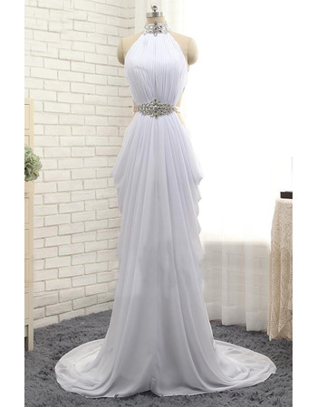 • Beautiful Mandarin Collar Long Chiffon Pick-Up Skirt Prom Evening Dress