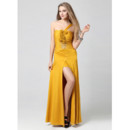 Beautiful One Shoulder Sheath/ Column Split Satin Long Prom Evening Dress for Girls