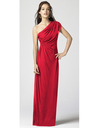 • Best Simple Sheath One Shoulder Red Long Chiffon Bridesmaid Dress