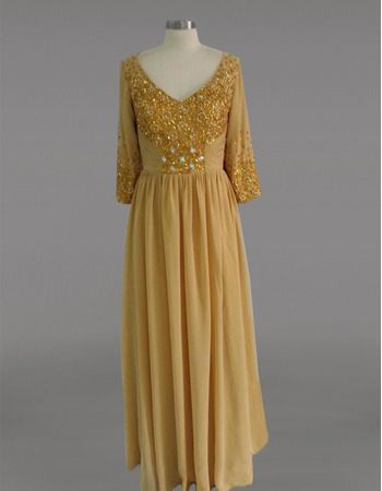 Cheap Custom V-Neck Chiffon Beaded Mother Dress with 3/4 Long Sleeves