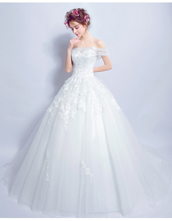 Cheap Modern Off-the-shoulder Chapel Train Organza Bridal Wedding Dress
