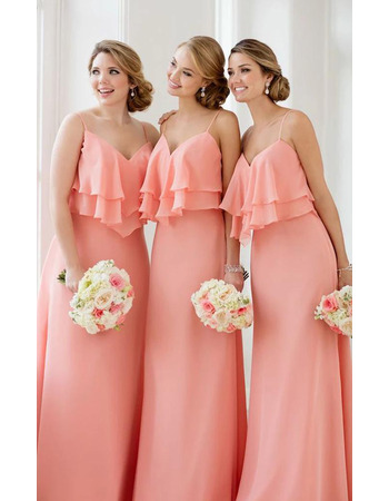 Custom Spaghetti Straps Sweetheart Long Chiffon Bridesmaid Dress