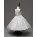 Custom Style Ball Gown Tea Length Lace Satin Flower Girl Dress