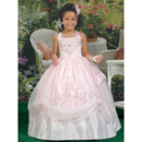 Kids Ball Gown Knee Length Organza Satin Bow Flower Girl Dress for Wedding