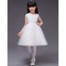 Girls Classic Pretty A-Line Round Tea Length Organza Applique Flower Girl/ First Communion Dress