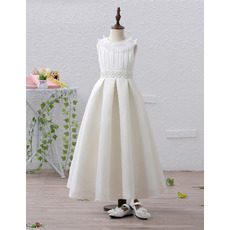 Lovely A-Line Long Organza White Flower Girl/ First Communion Dress