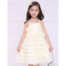 Inexpensive Beautiful Straps Short Satin Layered Skirt Flower Girl Dress