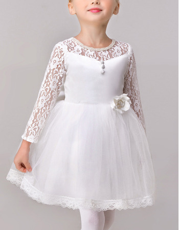Little Girls Adorable Ball Gown Short Satin Flower Girl Dress with Lace Sleeves