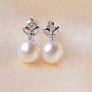 Fashionable White Round 8-9mm Freshwater Natural Pearl Earring Set
