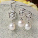 Beautiful White 8-9mm Round Freshwater Natural Pearl Earring and Pendant Set