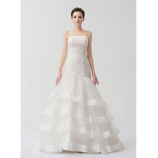 Gorgeous A-Line Strapless Chapel Train Tiered Wedding Dress for Bride