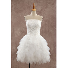 Affordable Informal Strapless Short Organza Ruffle Skirt Bridal Wedding Dress