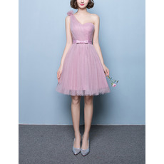 Cheap One Shoulder Knee Length Satin Tulle Bridesmaid Wedding Dress
