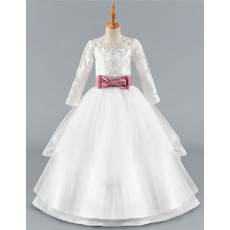 New Style Ball Gown Flower Girl Dress with Long Lace Sleeves