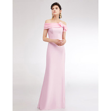 Affordable Off-the-shoulder Floor Length Satin Evening/ Prom Dress