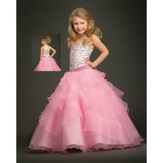 Princess Ball Gown Knee Length Organza Little Girls Party Dress