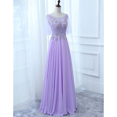 Beautiful Floor Length Chiffon Prom Evening Dress with Short Tulle Sleeves