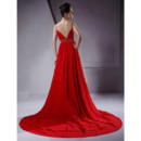 • Sexy A-Line Chapel Train Red Chiffon Prom Evening Dress for Women