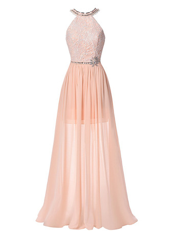Sexy Halter Floor Length Chiffon Backless Prom Evening Dress