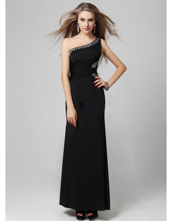 • Sexy One Shoulder Black Sheath Floor Length Satin Evening Dress for Women and Girls