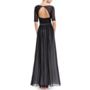 Simple Long Chiffon Lace Black Formal Evening Dress with Half Sleeves
