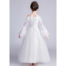 Stunning Off-the-shoulder Long Flower Girl Dress with Long Sleeves