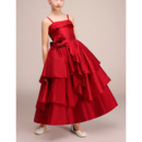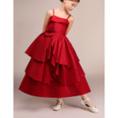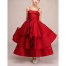 Stunning Spaghetti Straps Ankle Length Red Satin Flower Girl Dress