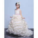 • Stunning Sweep Train Ruffle Skirt Flower Girl Dress with Belts