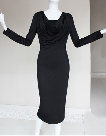 Stylish Modern Tea Length Sheath Satin Mother of the Bride Dress with Long Sleeves