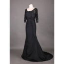 • Trendy Trumpet Long Black Formal Mother Dress with 3/4 Lace Sleeves