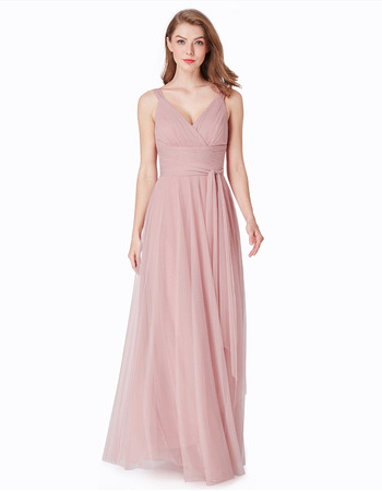 • Trendy V-Neck Floor Length Chiffon Bridesmaid Dress with Straps