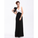 • Women's Affordable Black and White V-Neck Sheath Satin Long Prom Evening Dress for Sale