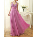 Women's Sexy Halter Sweetheart Long Chiffon Beading Bodice Prom Evening Dress